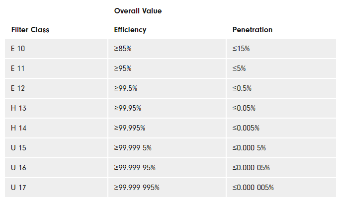 Filter Class Definition per DIN EN 1822